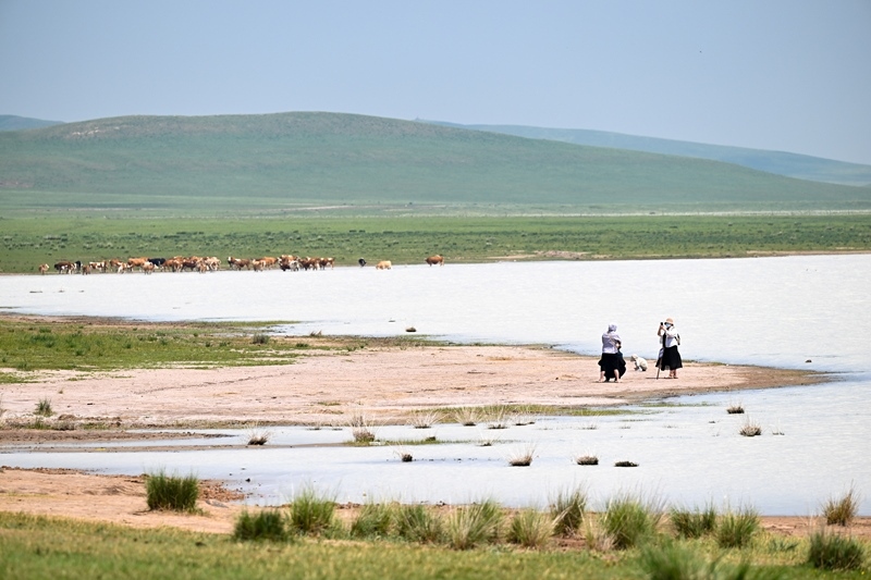 7月11日,游客在內(nèi)蒙古錫林郭勒盟太仆寺旗白音查干湖游玩。