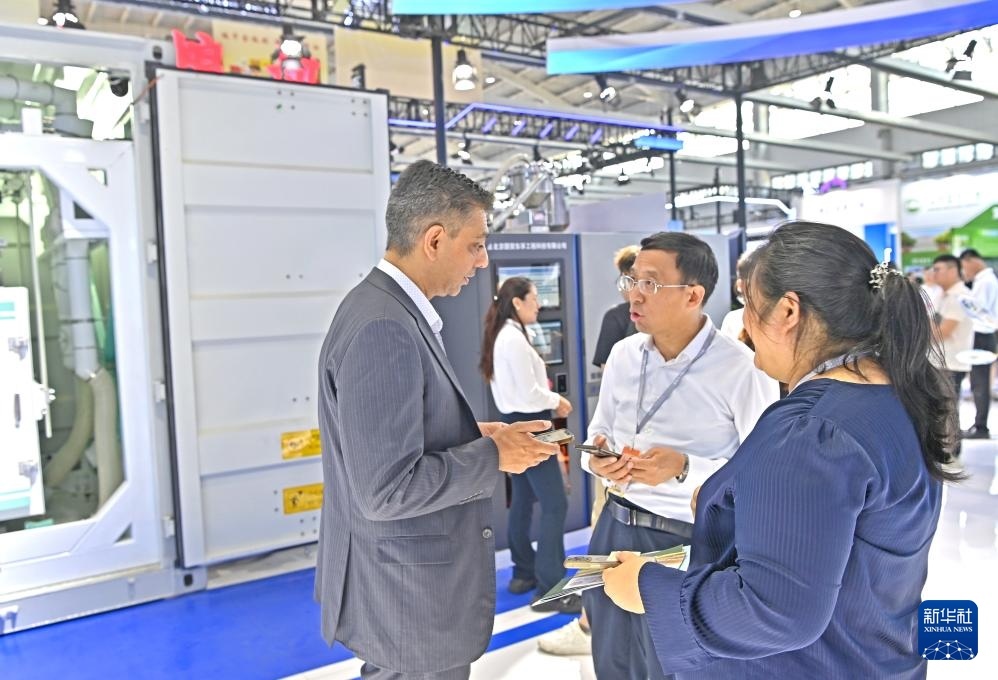 7月12日,國外客商在沈陽國際展覽中心了解糧食加工機(jī)械。新華社記者 周華 攝