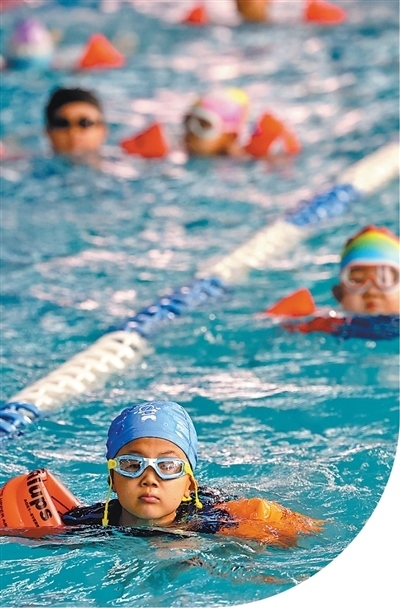 孩子們?cè)趯W(xué)習(xí)游泳。孫中喆攝