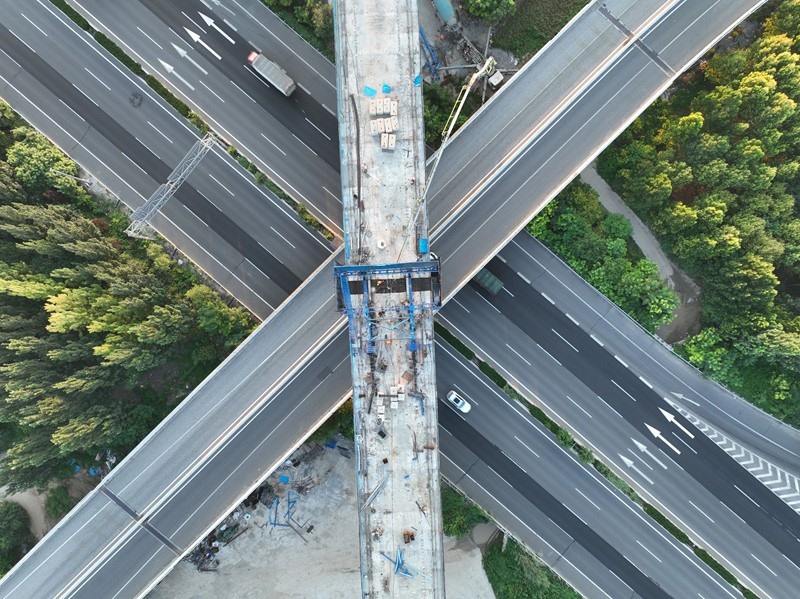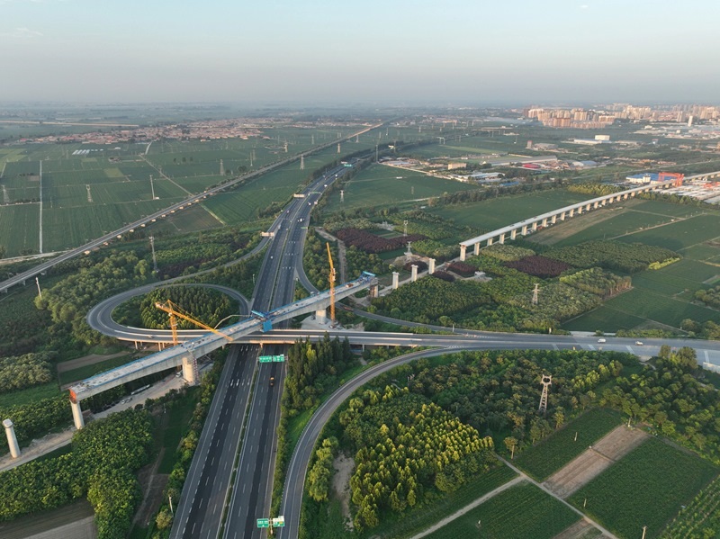 7月18日拍攝的雄忻高鐵保定東特大橋跨京港澳高速連續(xù)梁中跨施工現(xiàn)場(無人機照片)。
