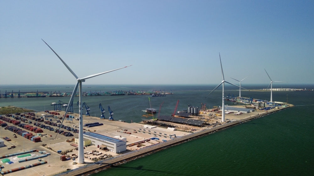 “4臺風(fēng)力發(fā)電機(jī)一年可發(fā)電約7000萬千瓦時,足以覆蓋碼頭設(shè)備及??看暗挠秒娦枨螅哂嚯娏窟€能上網(wǎng)銷售。”山東省港口集團(tuán)濰坊港有限公司黨支部書記、總經(jīng)理孫超說,濰坊港已形成風(fēng)、光、氫“多能互補(bǔ)”的用能結(jié)構(gòu),每年可節(jié)省標(biāo)煤2.1萬噸,減少二氧化碳排放5.7萬噸。