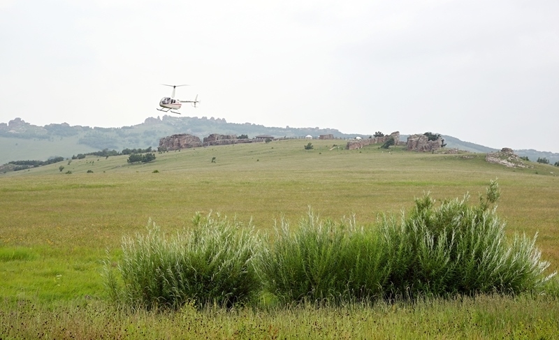 7月24日,空中觀光直升機從內(nèi)蒙古自治區(qū)赤峰市克什克騰旗阿斯哈圖石林上空飛過。