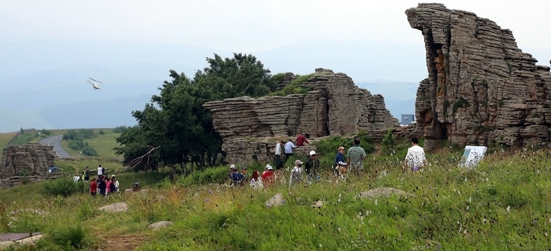 7月24日,游客在內(nèi)蒙古自治區(qū)赤峰市克什克騰旗阿斯哈圖石林游覽。