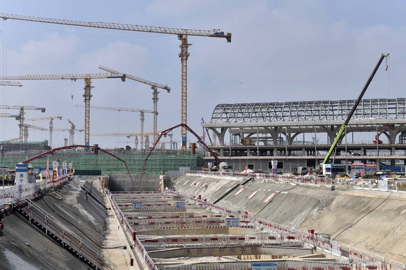 7月30日拍攝的濟濱高鐵機場隧道施工現(xiàn)場(無人機照片)。