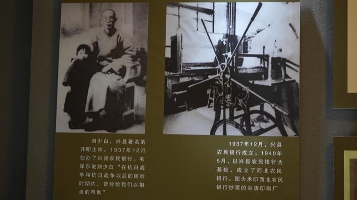 左圖為興縣農(nóng)民銀行的創(chuàng)始人——開明士紳劉少白;右圖為承印西北農(nóng)民銀行鈔票的洪濤印刷廠。新華社記者 原勛 攝