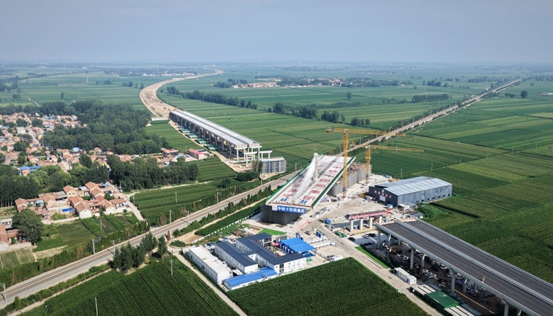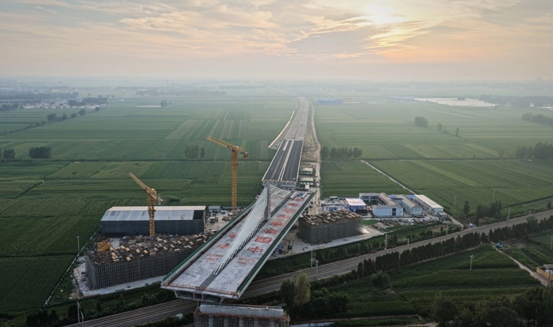 當日,在山東德州,由中國鐵建投資集團投資建設、中鐵十四局集團承建的德州至上饒高速公路(簡稱“德上高速”)臨清連接線跨京九鐵路斜拉橋實現(xiàn)精準轉體對接。該橋采用不對稱矮塔斜拉結構,重達23500噸。