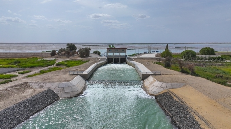 8月5日,新疆塔里木河在尉犁縣境內(nèi)大西海子水庫(kù)啟動(dòng)第26次生態(tài)輸水第二階段輸水工作。