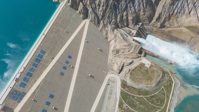 這是8月7日拍攝的阿爾塔什水利樞紐工程(無人機照片)。