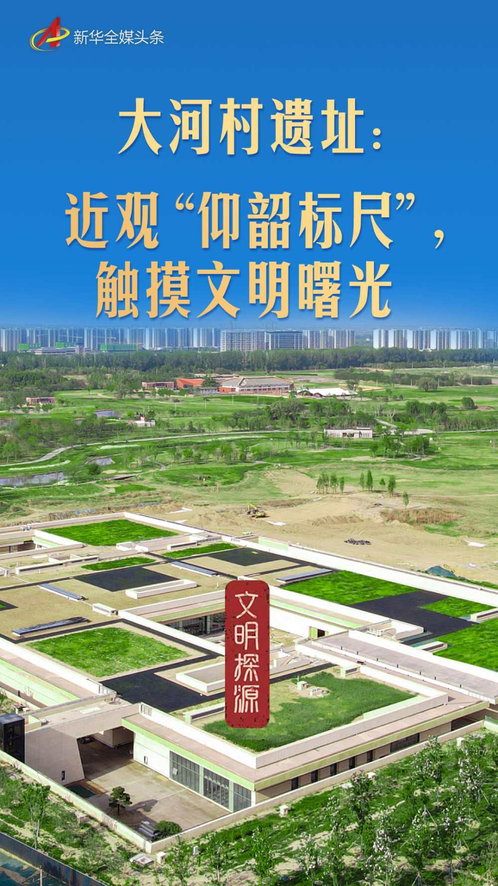 從空中俯瞰,這座設(shè)計上別出心裁的“下沉式”博物館,與綠意盎然的大河村國家考古遺址公園融為一體——泥土之下,黃河流域中華文明起源階段完整而連續(xù)的文化風(fēng)貌層層疊壓。