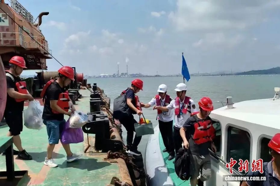 8月12日,福建海事局工作人員動員海上作業(yè)船只工作人員離船避風(fēng)。中新社發(fā) 福建海事局 供圖