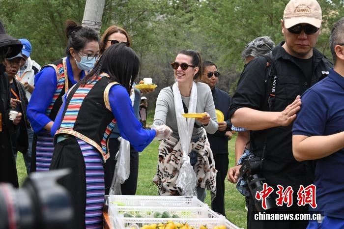 2025年6月5日,105位境外游客組成的國(guó)際旅行商考察團(tuán)走進(jìn)西藏山南市瓊結(jié)縣強(qiáng)吉村。他們參觀古建活化項(xiàng)目,觀看非遺展演,體驗(yàn)鄉(xiāng)村露營(yíng)。 中新社記者 貢嘎來松 攝