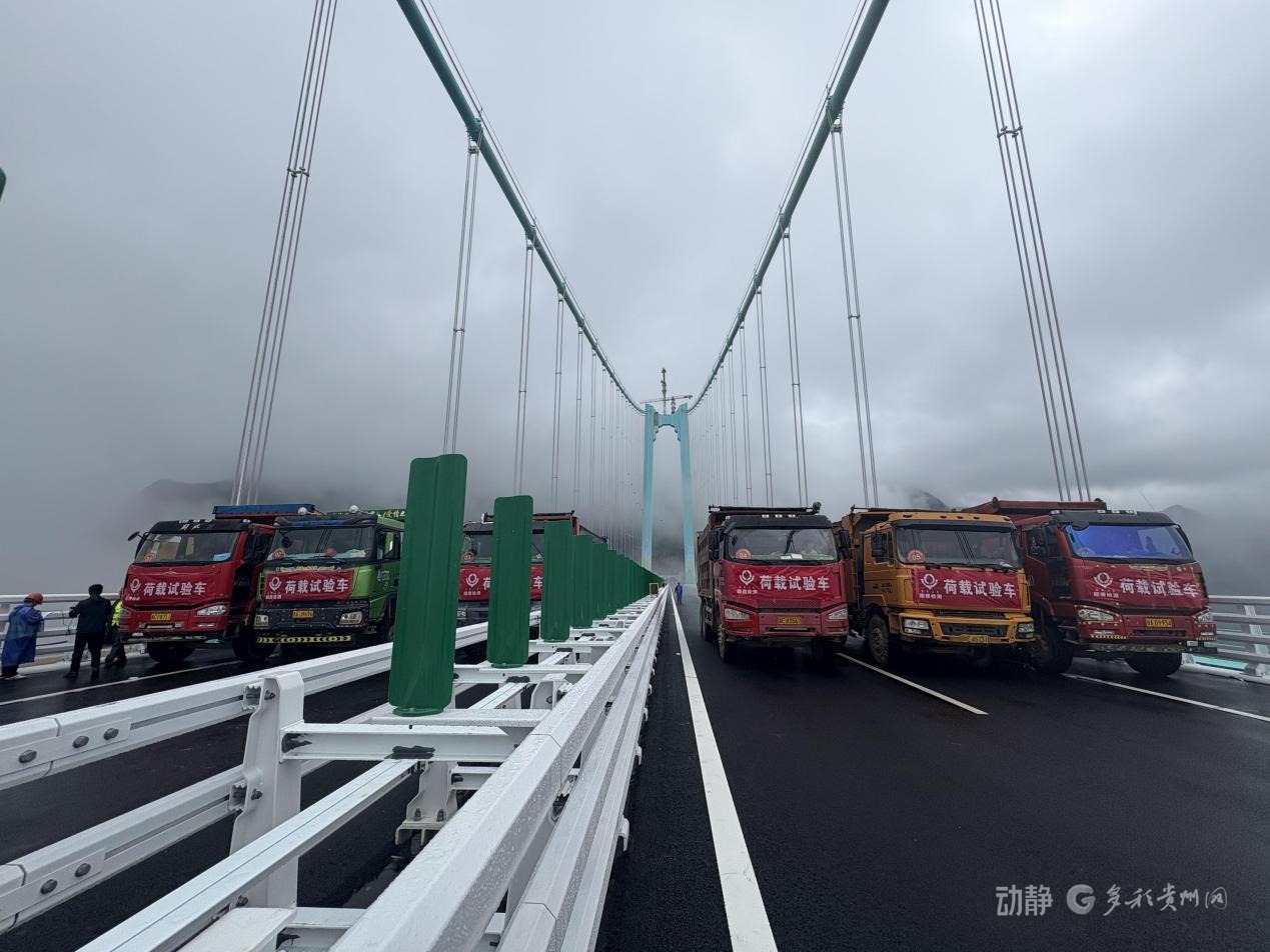 花江峽谷大橋啟動荷載試驗8月21日,隨著6輛35噸的三軸載重車率先駛上橋面,花江峽谷大橋荷載試驗正式啟動,迎來通車前的“關(guān)鍵大考”。