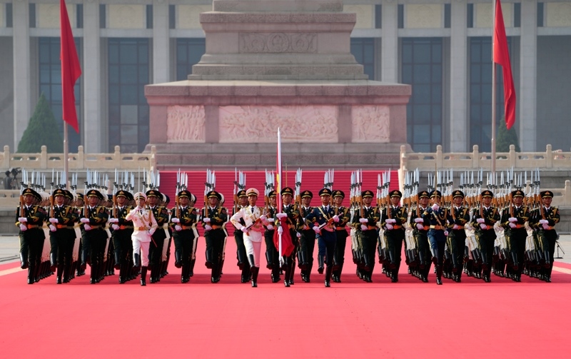 9月3日,紀(jì)念中國(guó)人民抗日戰(zhàn)爭(zhēng)暨世界反法西斯戰(zhàn)爭(zhēng)勝利80周年大會(huì)在北京隆重舉行。這是國(guó)旗護(hù)衛(wèi)隊(duì)從人民英雄紀(jì)念碑基座出發(fā),走向旗桿基座。