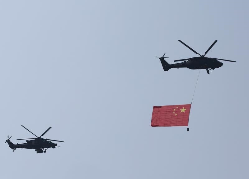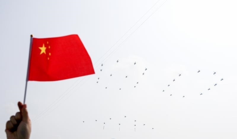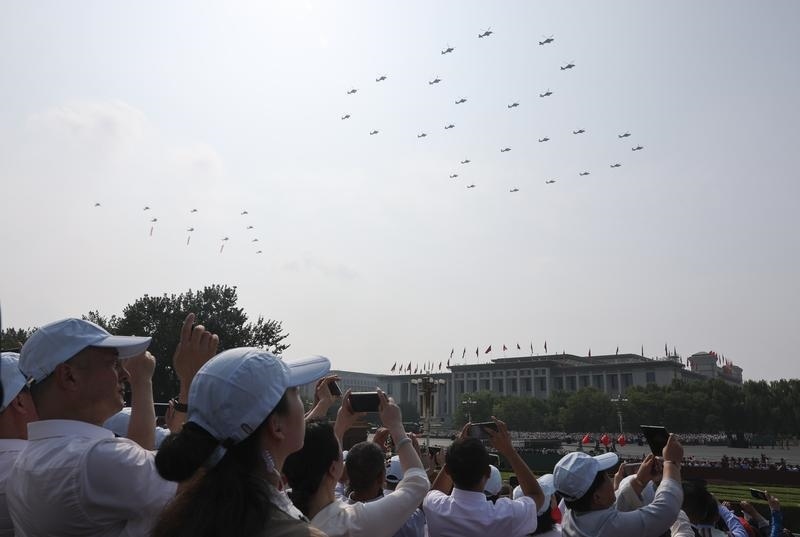 9月3日,紀(jì)念中國人民抗日戰(zhàn)爭暨世界反法西斯戰(zhàn)爭勝利80周年大會在北京隆重舉行。這是空中護旗梯隊。