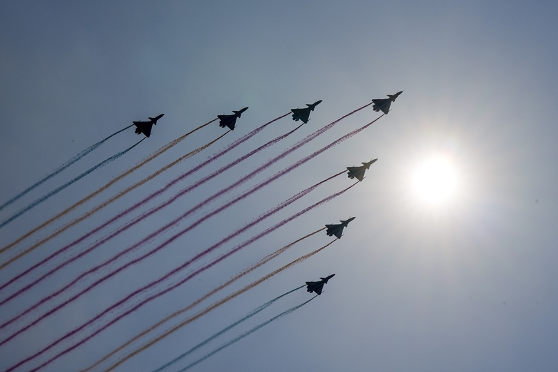 9月3日,紀(jì)念中國人民抗日戰(zhàn)爭暨世界反法西斯戰(zhàn)爭勝利80周年大會在北京隆重舉行。這是空中梯隊(duì)接受檢閱。