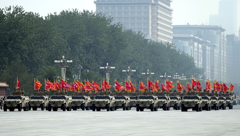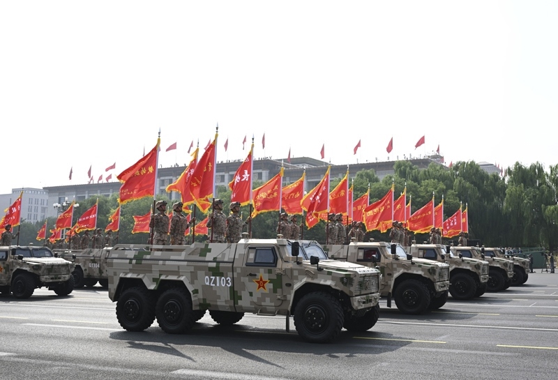 9月3日,紀(jì)念中國人民抗日戰(zhàn)爭暨世界反法西斯戰(zhàn)爭勝利80周年大會在北京隆重舉行。這是信息支援部隊(duì)方隊(duì)接受檢閱。