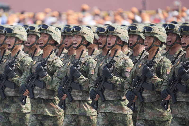 9月3日,紀(jì)念中國人民抗日戰(zhàn)爭暨世界反法西斯戰(zhàn)爭勝利80周年大會在北京隆重舉行。這是地面突擊方隊(duì)接受檢閱。
