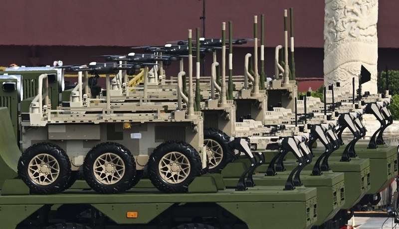 9月3日,紀(jì)念中國人民抗日戰(zhàn)爭(zhēng)暨世界反法西斯戰(zhàn)爭(zhēng)勝利80周年大會(huì)在北京隆重舉行。這是陸上無人作戰(zhàn)方隊(duì)的裝備。