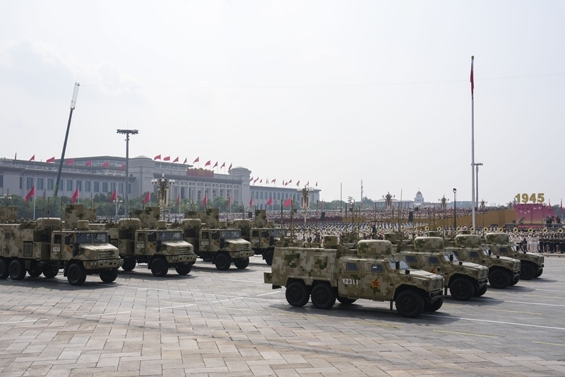 9月3日,紀(jì)念中國人民抗日戰(zhàn)爭(zhēng)暨世界反法西斯戰(zhàn)爭(zhēng)勝利80周年大會(huì)在北京隆重舉行。這是信息支援方隊(duì)接受檢閱。