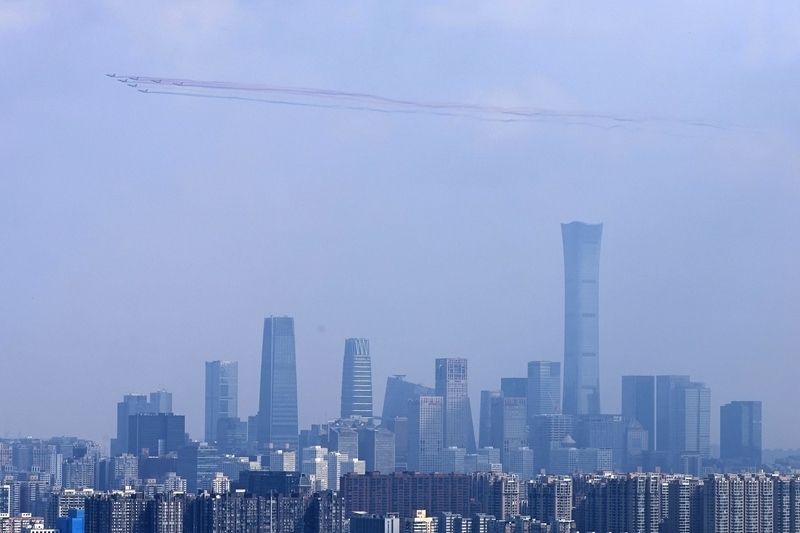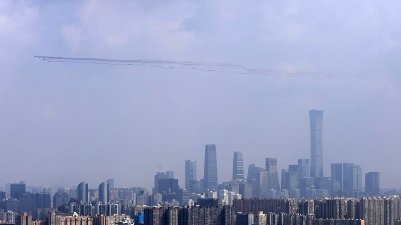 9月3日,紀(jì)念中國人民抗日戰(zhàn)爭(zhēng)暨世界反法西斯戰(zhàn)爭(zhēng)勝利80周年大會(huì)在北京隆重舉行。這是教練機(jī)梯隊(duì)接受檢閱。