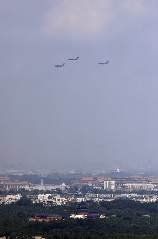 9月3日,紀(jì)念中國人民抗日戰(zhàn)爭(zhēng)暨世界反法西斯戰(zhàn)爭(zhēng)勝利80周年大會(huì)在北京隆重舉行。這是運(yùn)輸機(jī)梯隊(duì)接受檢閱。