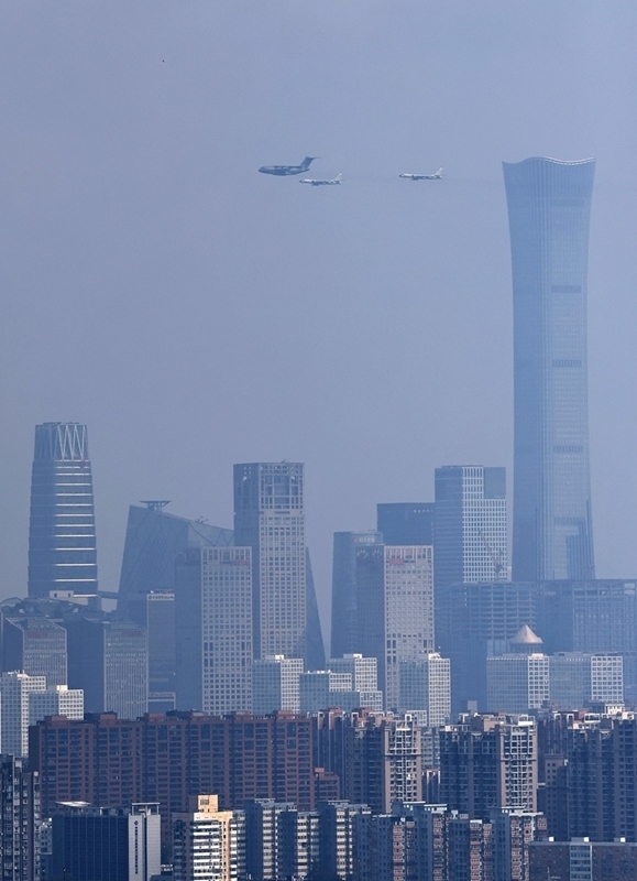 9月3日,紀(jì)念中國人民抗日戰(zhàn)爭(zhēng)暨世界反法西斯戰(zhàn)爭(zhēng)勝利80周年大會(huì)在北京隆重舉行。這是轟炸機(jī)梯隊(duì)接受檢閱。