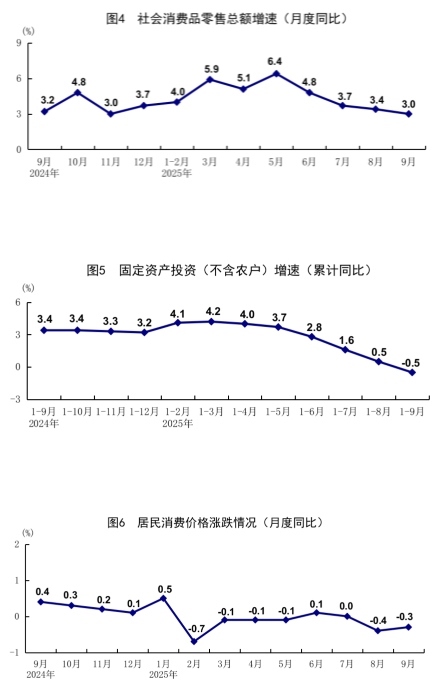 前三季度,全國(guó)工業(yè)生產(chǎn)者出廠價(jià)格同比下降2.8%。其中,9月份同比下降2.3%,降幅比上月收窄0.6個(gè)百分點(diǎn),環(huán)比持平。前三季度,工業(yè)生產(chǎn)者購(gòu)進(jìn)價(jià)格同比下降3.2%。其中,9月份同比下降3.1%,降幅比上月收窄0.9個(gè)百分點(diǎn),環(huán)比上漲0.1%。