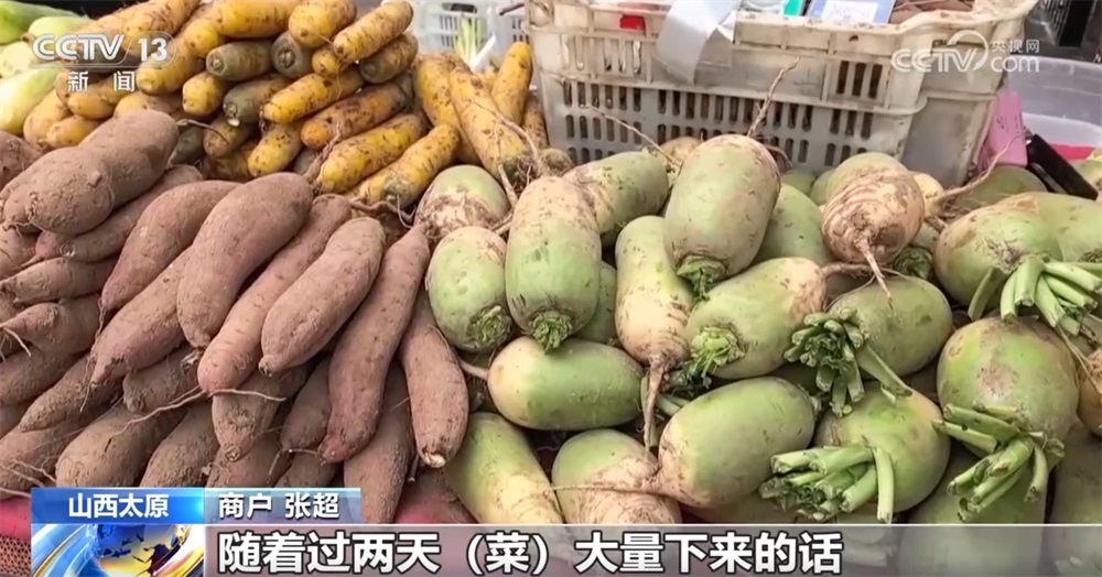商戶張超稱:“芥菜今年一塊錢一斤,白蘿卜也是一塊錢一斤,隨著過兩天菜大量下來的話,價(jià)格還會(huì)便宜點(diǎn)?!?/p>