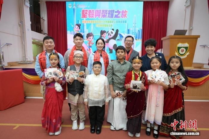 在香港油麻地街坊會(huì)學(xué)校,四川省大熊貓國(guó)家公園文化創(chuàng)意創(chuàng)新聯(lián)盟副秘書長(zhǎng)畢飛向?qū)W生們科普四川生態(tài)及大熊貓保育知識(shí)。代表團(tuán)還向?qū)W生派發(fā)文創(chuàng)貼紙,為體育與大熊貓主題書籍簽名。代表團(tuán)也和同學(xué)們一起參觀第十五屆全國(guó)運(yùn)動(dòng)會(huì)主題展板。