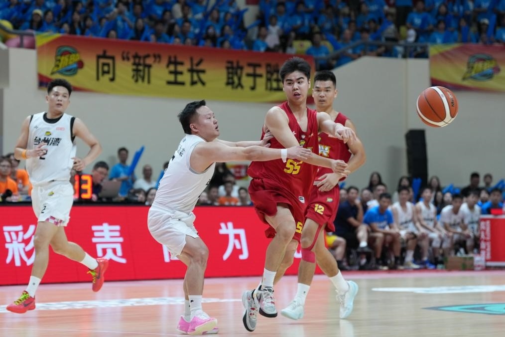 圖為9月10日“浙BA”臺(tái)州灣新區(qū)隊(duì)對(duì)陣嘉興隊(duì)的比賽現(xiàn)場(chǎng)。新華社記者 黃宗治 攝