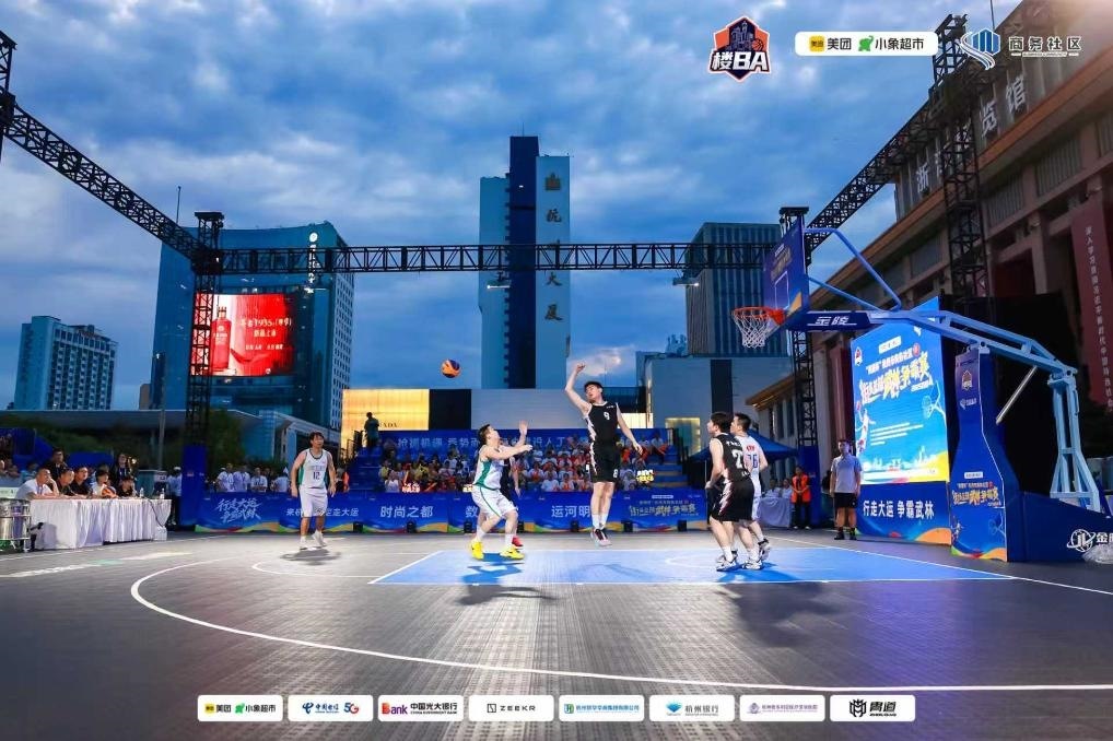 夜幕降臨,位于杭州鬧市區(qū)的武林廣場(chǎng)燈火璀璨、人聲鼎沸。每逢周五至周日,杭州市商務(wù)社區(qū)街頭籃球武林爭(zhēng)霸賽都會(huì)在此地準(zhǔn)時(shí)上演。這項(xiàng)以樓宇為單位的街頭籃球爭(zhēng)霸賽,融合了寫(xiě)字樓的現(xiàn)代氣質(zhì)與街頭籃球的親民活力,被市民戲稱為“樓BA”。