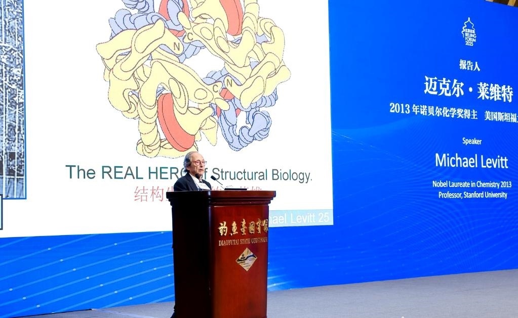 諾貝爾化學(xué)獎得主、美國斯坦福大學(xué)教授邁克爾·萊維特在演講。(受訪者供圖)