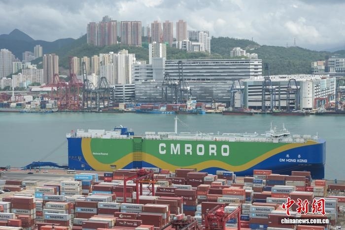 2025年9月28日,全球首艘9300CEU(標準車位)甲醇雙燃料動力滾裝船“港榮”輪(“CM HONG KONG”輪)首航香港儀式在香港舉行。圖為“港榮”輪。(資料圖) 中新網(wǎng)記者 陳永諾 攝