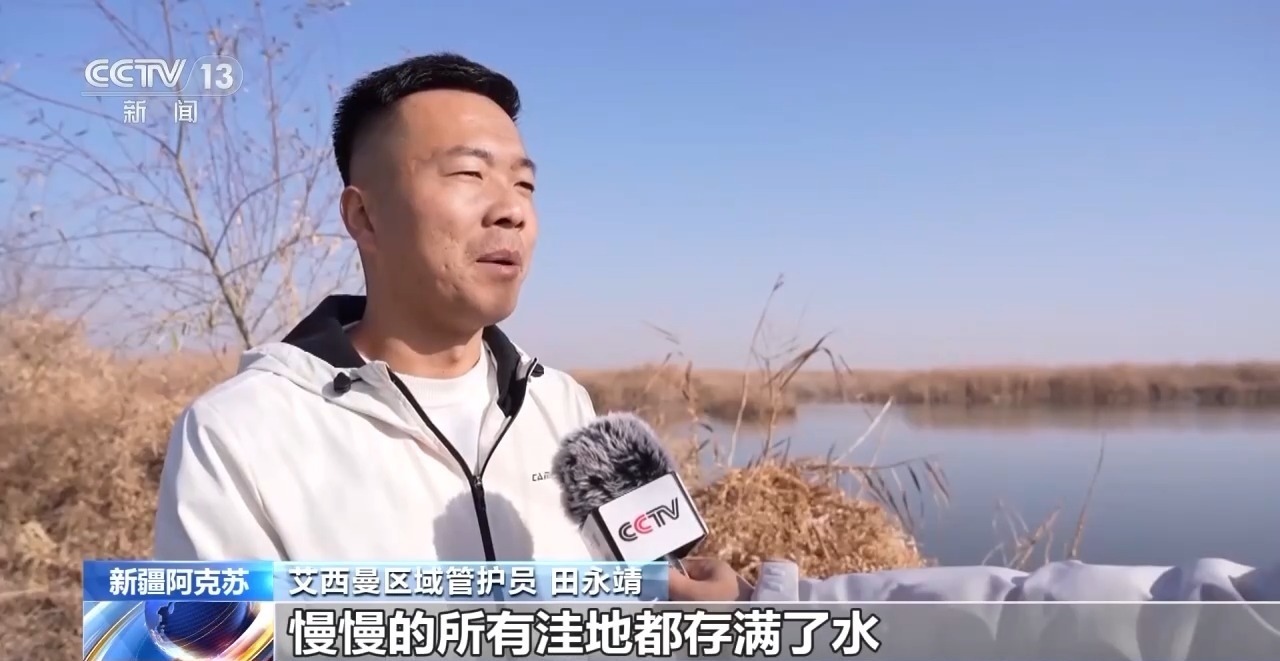 艾西曼區(qū)域管護(hù)員 田永靖:再生水過(guò)來(lái)之后,慢慢所有洼地都存滿(mǎn)了水,變成了現(xiàn)在所看到的濕地,這一大片的蘆葦現(xiàn)在長(zhǎng)勢(shì)都特別不錯(cuò)。