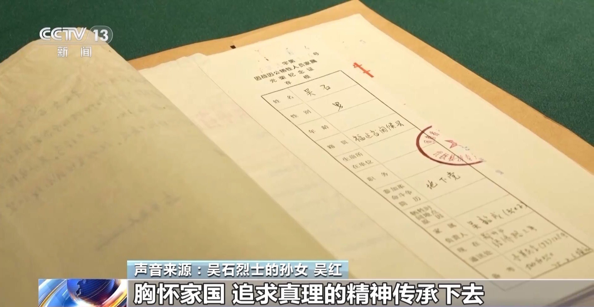 吳石烈士的孫女 吳紅:大家都很敬仰這些先烈們,他們生前留下了這些寶貴資料,我們慢慢地能對(duì)這些先烈們了解更多。傳承這段歷史,讓爺爺和先輩們,包括所有的先烈們的胸懷家國、追求真理的精神傳承下去。