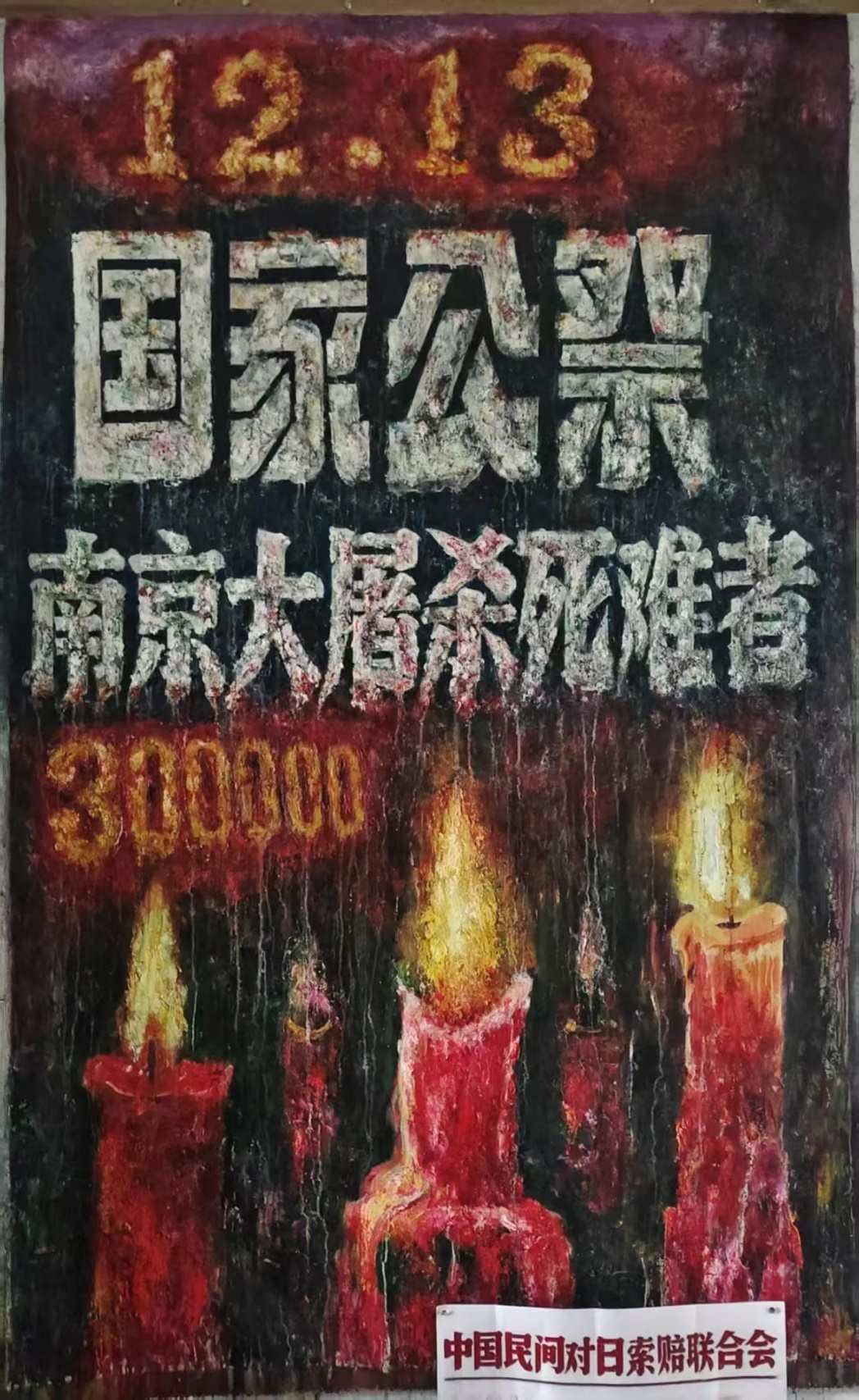 隨信附上的四張圖片為中國民間對日索賠聯(lián)合會志愿者、重慶畫家李云創(chuàng)作的油畫照片,畫家30年來一直在研究南京大屠殺歷史,已創(chuàng)作反映南京大屠殺歷史事實的油畫作品共200多幅,將擇機對外展示,力圖以畫筆向全社會講述、宣傳南京大屠殺暴行。