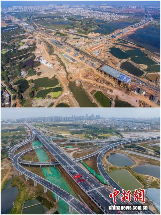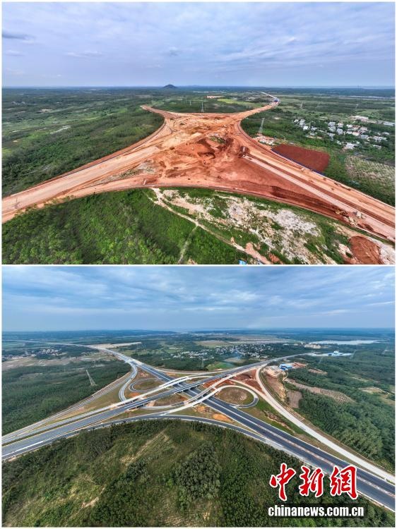 2025年12月18日,海南自由貿(mào)易港正式啟動(dòng)全島封關(guān)。近年來,海南自貿(mào)港建設(shè)在利好政策帶動(dòng)下不斷刷新“自貿(mào)港速度”,一個(gè)個(gè)重大項(xiàng)目、重點(diǎn)園區(qū)拔地而起,直觀呈現(xiàn)海南自貿(mào)港的蓬勃生機(jī)。這里正成為中國(guó)對(duì)外開放的新前沿、互利合作的新熱土和推動(dòng)經(jīng)濟(jì)全球化的新引擎。上資料圖為2024年10月23日建設(shè)中的海南首條雙向八車道高速公路——海南洋浦疏港高速公路SG01標(biāo)段光村互通,下資料圖為2025年12月2日正進(jìn)行瀝青攤鋪?zhàn)鳂I(yè)的海南洋浦疏港高速公路光村互通。(拼版圖,無人機(jī)照片)