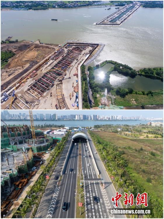 2025年12月18日,海南自由貿(mào)易港正式啟動(dòng)全島封關(guān)。近年來,海南自貿(mào)港建設(shè)在利好政策帶動(dòng)下不斷刷新“自貿(mào)港速度”,一個(gè)個(gè)重大項(xiàng)目、重點(diǎn)園區(qū)拔地而起,直觀呈現(xiàn)海南自貿(mào)港的蓬勃生機(jī)。這里正成為中國(guó)對(duì)外開放的新前沿、互利合作的新熱土和推動(dòng)經(jīng)濟(jì)全球化的新引擎。上資料圖為2019年6月19日的海口文明東越江隧道施工現(xiàn)場(chǎng),下資料圖為2025年12月7日已建成通車的海南省首條跨越南渡江隧道——文明東隧道。(拼版圖,無人機(jī)照片)