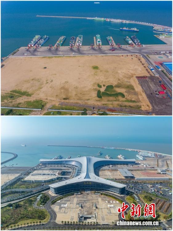 2025年12月18日,海南自由貿(mào)易港正式啟動(dòng)全島封關(guān)。近年來,海南自貿(mào)港建設(shè)在利好政策帶動(dòng)下不斷刷新“自貿(mào)港速度”,一個(gè)個(gè)重大項(xiàng)目、重點(diǎn)園區(qū)拔地而起,直觀呈現(xiàn)海南自貿(mào)港的蓬勃生機(jī)。這里正成為中國(guó)對(duì)外開放的新前沿、互利合作的新熱土和推動(dòng)經(jīng)濟(jì)全球化的新引擎。上資料圖為2018年9月29日的??谛潞L裝碼頭客運(yùn)綜合樞紐站項(xiàng)目建設(shè)地塊,下資料圖為2025年12月5日已投入使用的海口新海滾裝碼頭客運(yùn)綜合樞紐站。(拼版圖,無人機(jī)照片)