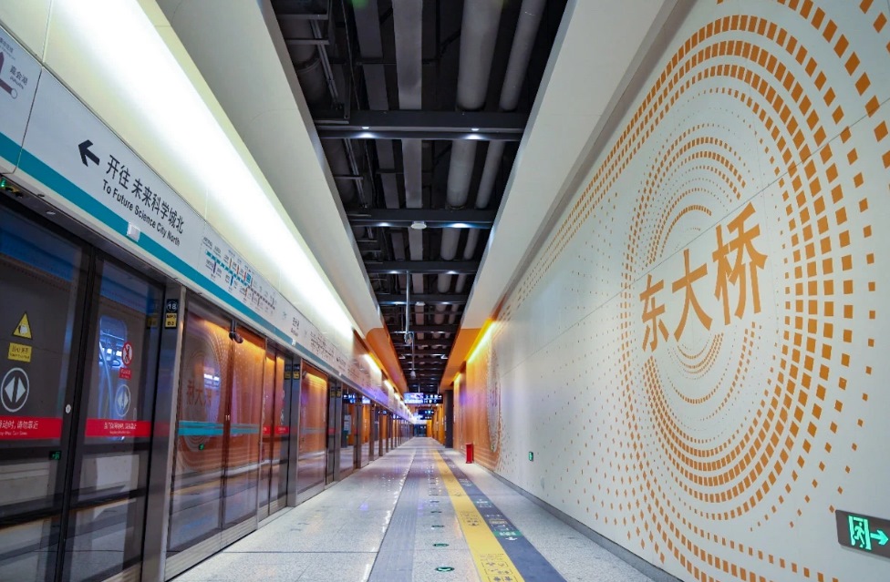 17號線中段延續(xù)了“科創(chuàng)未來”主題,在重點站融入地域文化元素。在東大橋站站廳層,一幅幅繪畫藝術(shù)品讓人眼前一亮。
