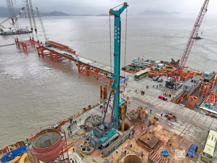 山河智能SWDM1280型旋挖鉆機在甬舟鐵路西堠門公鐵兩用跨海大橋施工