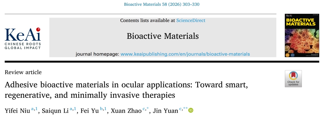 據(jù)悉,此前袁進(jìn)教授團(tuán)隊(duì)已在光固化粘合水凝膠無(wú)縫線(xiàn)角膜移植、受損角膜修復(fù)等方面取得突破。此次研究成果,為基礎(chǔ)研究和臨床應(yīng)用提供了系統(tǒng)指引,有望加速新一代眼科“生物膠水”走向臨床,惠及更多眼病患者。