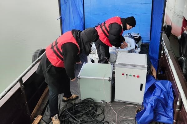 團隊成員冒著嚴(yán)寒在湖上調(diào)試設(shè)備。