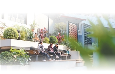 重慶市沙坪壩區(qū)沙坪壩街道一心村社區(qū),居民在更新改造后的街巷休息。孫凱芳攝(影像中國)