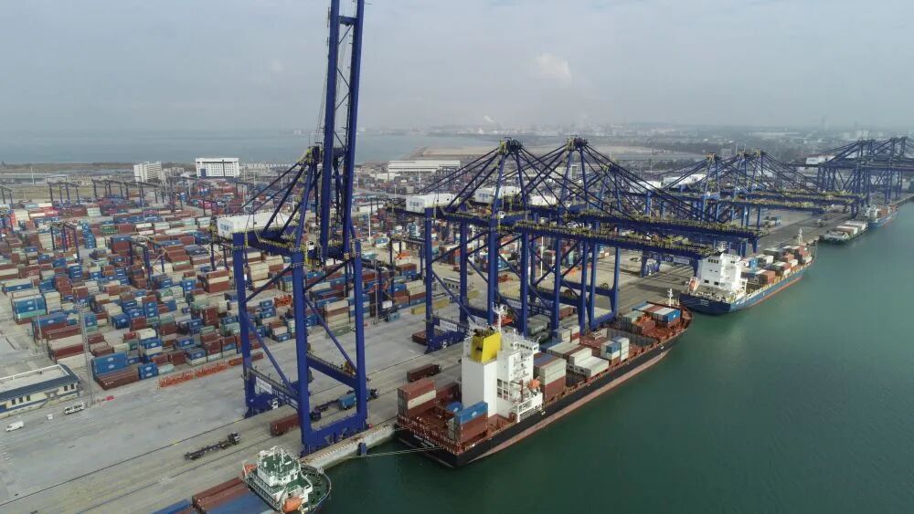 1月13日拍攝的洋浦國(guó)際集裝箱碼頭(無(wú)人機(jī)照片)。新華社記者吳茂輝 攝