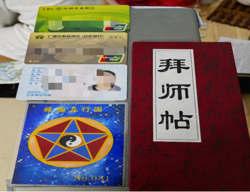 ▲ 學(xué)員花高價(jià)獲得的“拜師帖”及“旋極五行”圖卡