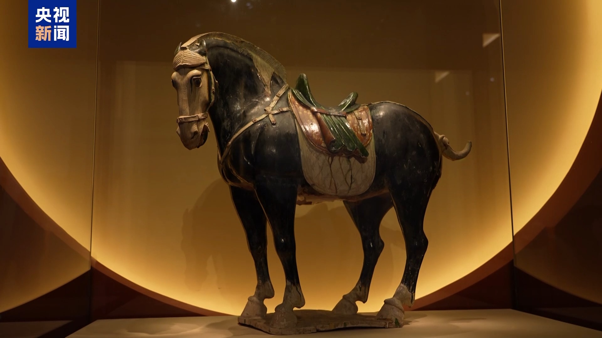 國家博物館館員、策展人 許文珺:它一改漢代時期古拙平穩(wěn)的風格,展現(xiàn)出了唐馬的風范。它是唐三彩中難得的一件黑釉精品,也是我們國博的鎮(zhèn)館之寶之一。