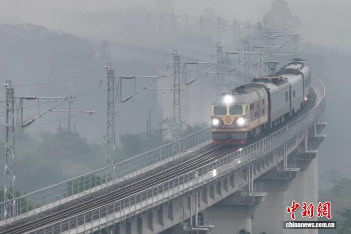 圖為2025年11月,檢測(cè)列車正在通過(guò)隆瀘敘鐵路高架橋梁段(資料圖)。蜀道鐵投集團(tuán)供圖