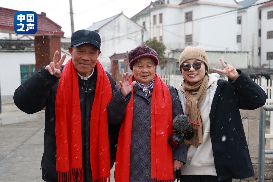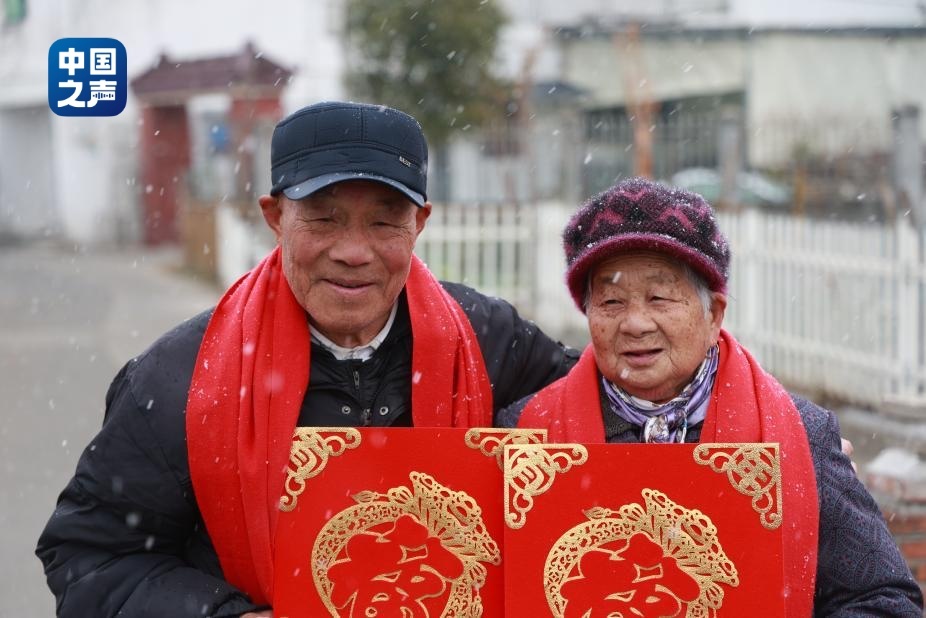 飄雪的冬日,陳真又一次如約來(lái)到上海金山嘴漁村,給她熟悉的“老朋友們”拍照。幾對(duì)相守幾十年的老夫妻舉著紅彤彤的大福字,圍著耀眼的大紅圍巾,笑聲朗朗?!芭c雪共白頭”的浪漫,陳真拍了一上午,也跟著老人們笑了一上午。