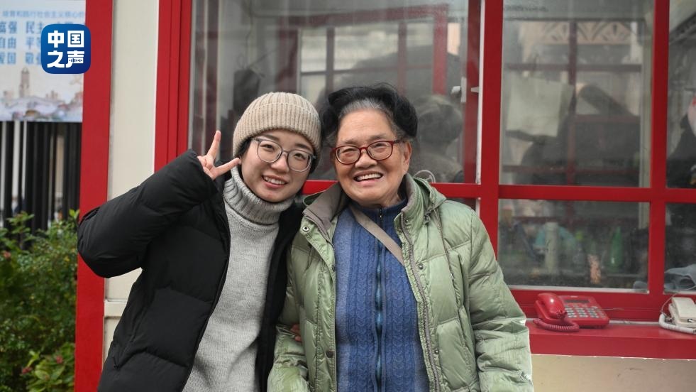 陳真與沈奶奶在電話(huà)亭前合影